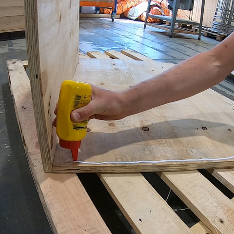 Start by putting wood-glue on the side that you would like to start with. This will give the box extra stability. Before screwing the pieces together, you should pre-drill the wood so that the wood will not crack when during the screwing process. We used 4 screws, which were spread evenly across the wood, to secure the pieces together. Once you have only one piece of wood left, stop there and move on to the next step.